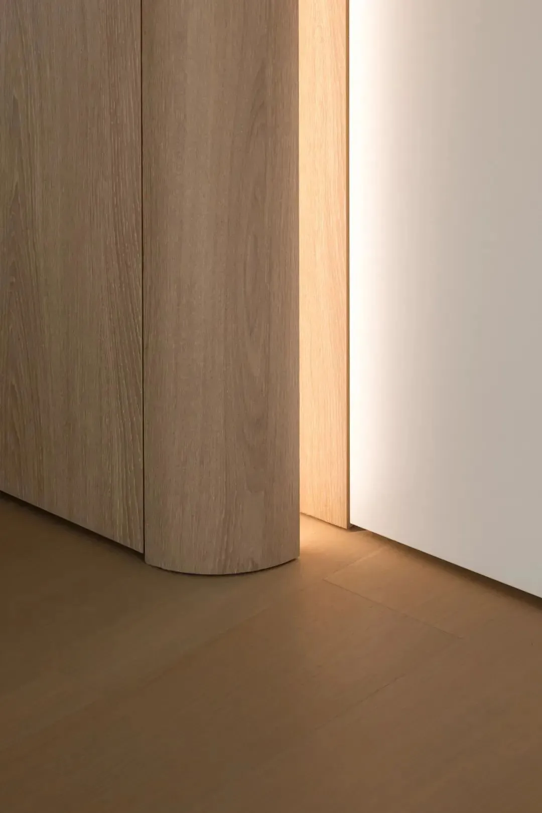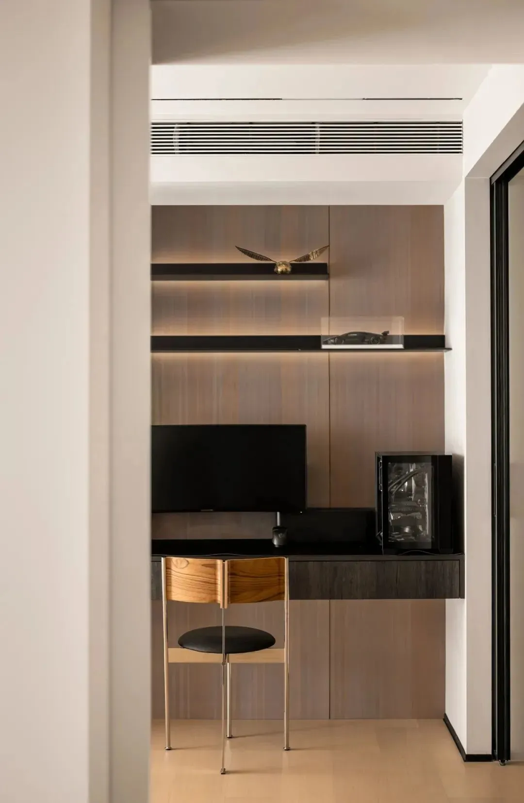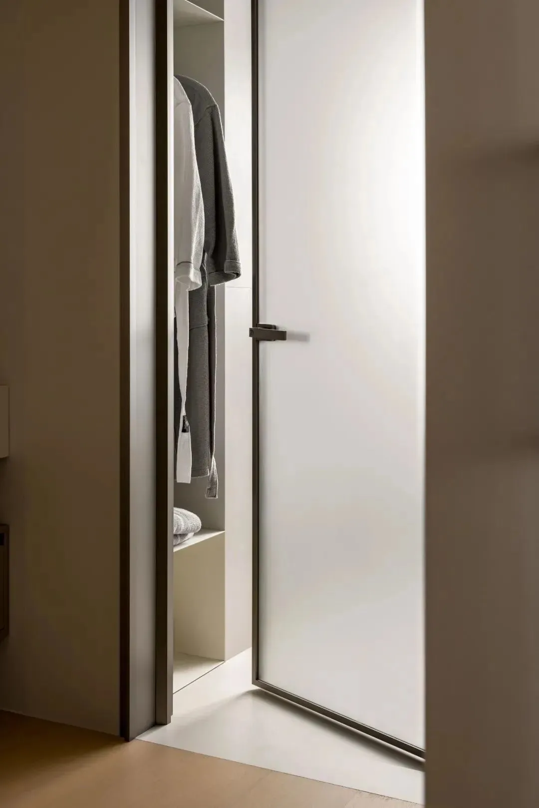 Due to the limited area of this area, the mirrored cabinet door is selected when customizing the storage cabinet to enhance the sense of visual extension, and the light strip is embedded in the cabinet to facilitate the daily selection of clothes.