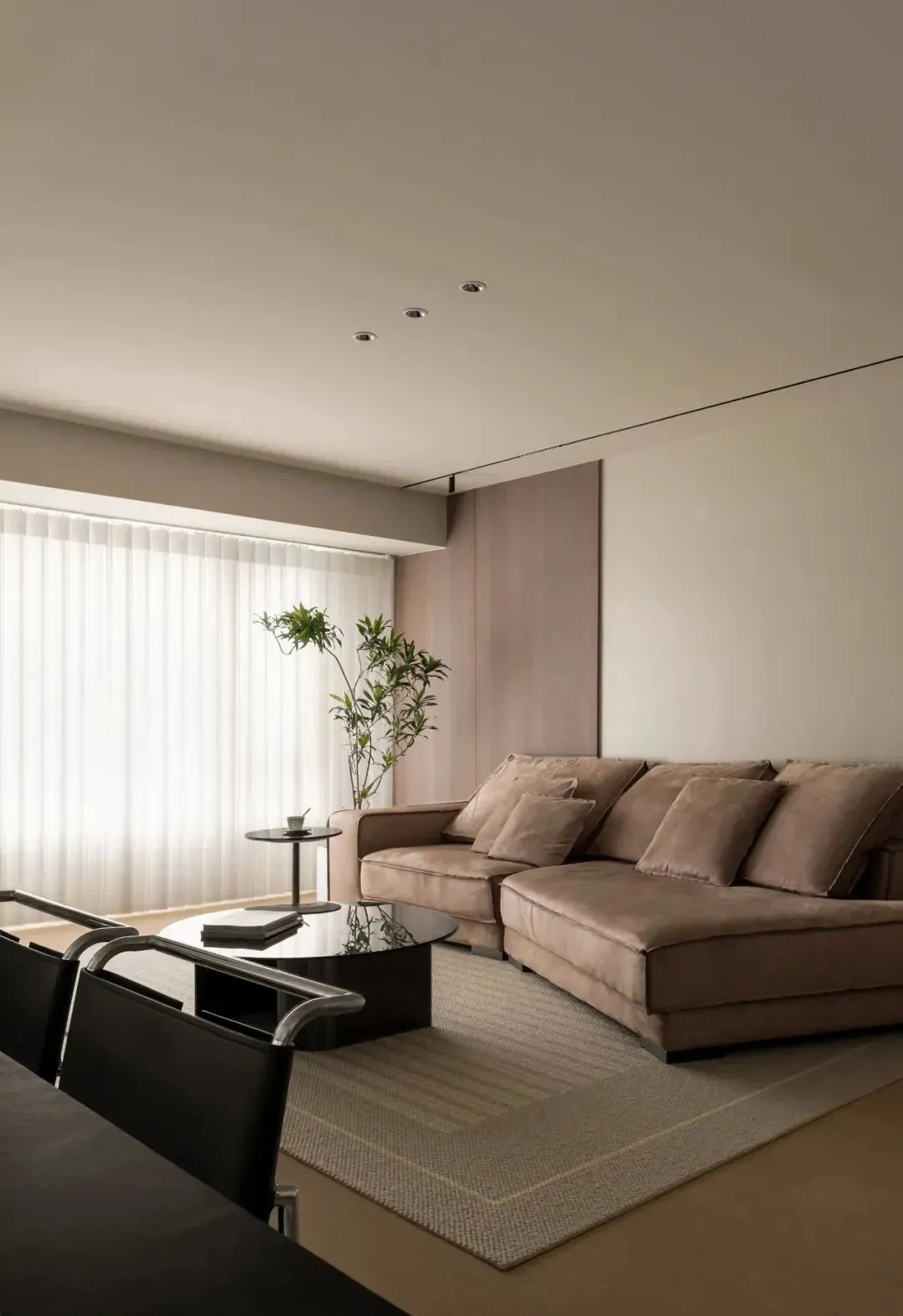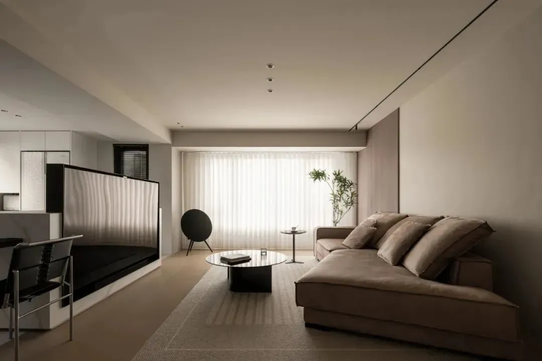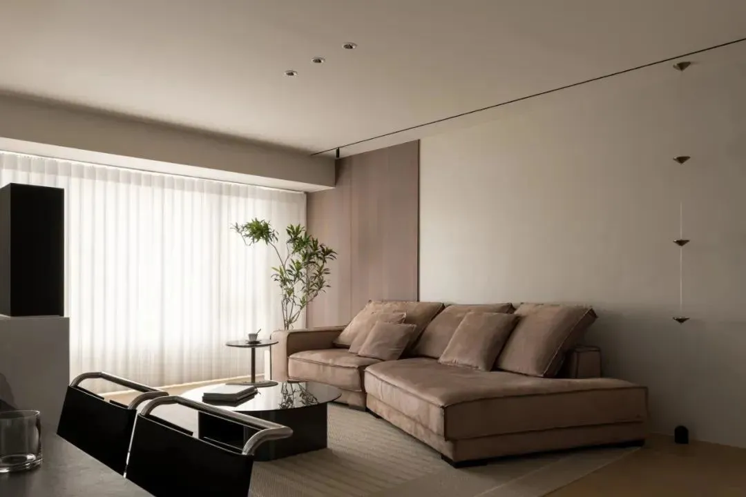 This case is a textured home of 113 ㎡ that combines modern style with Bauhaus elements. The designer skillfully adjusted the original three bedrooms into two bedrooms, taking earth tones such as Ru kiln color and brown coffee color as the keynote, laying out a calm and energetic home atmosphere, as if telling the youthful attitude and the temperature of life.