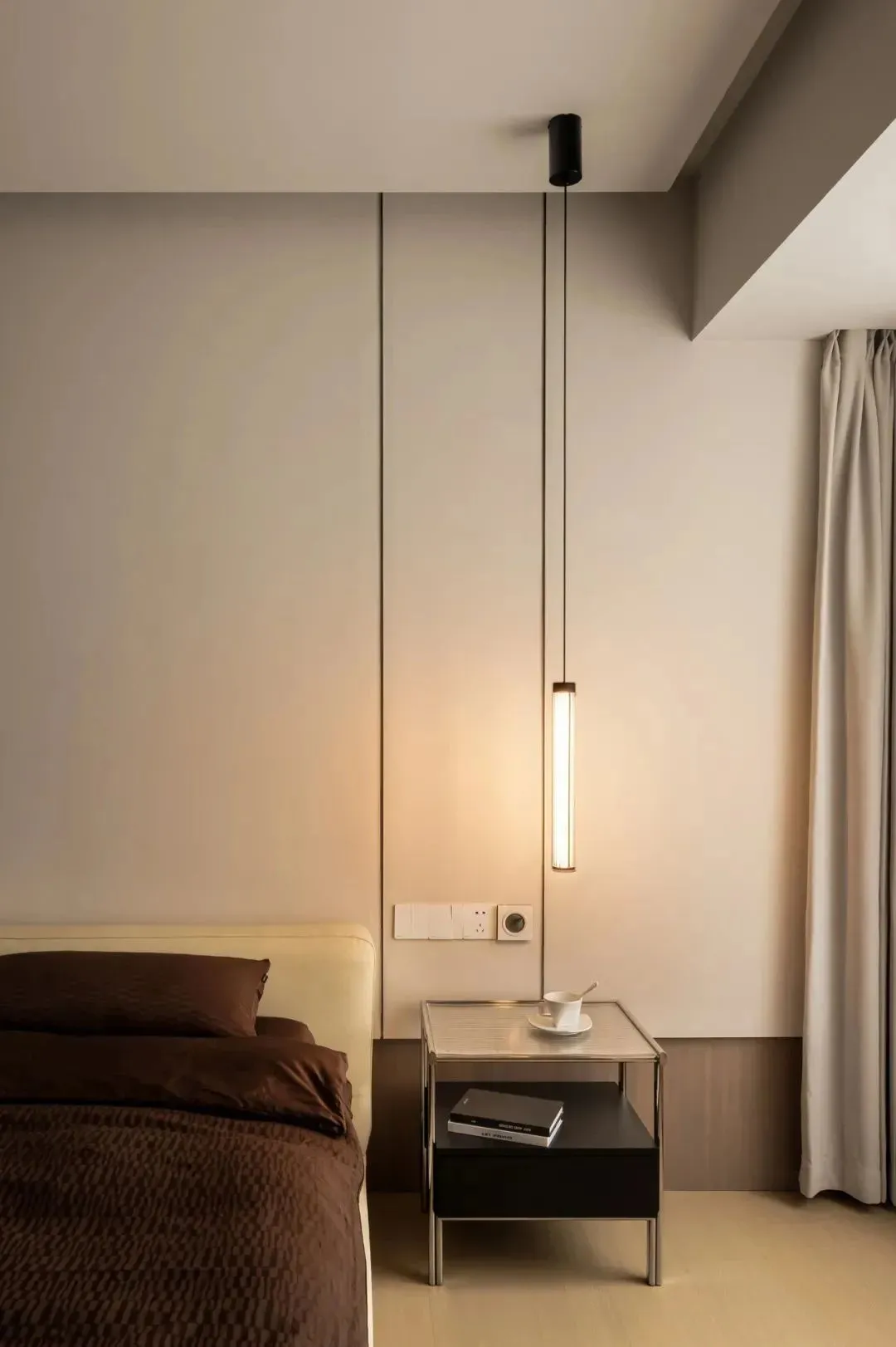 In order to enhance the space level and sense of design, the designer added a chandelier to the bedside area.