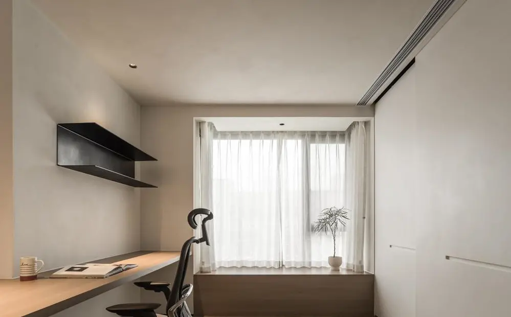 At the rear is the whole wall storage cabinet. After the moving door is closed, it becomes a private and intelligent space. This little corner exudes unique charm and gives its occupants an unparalleled sense of security.