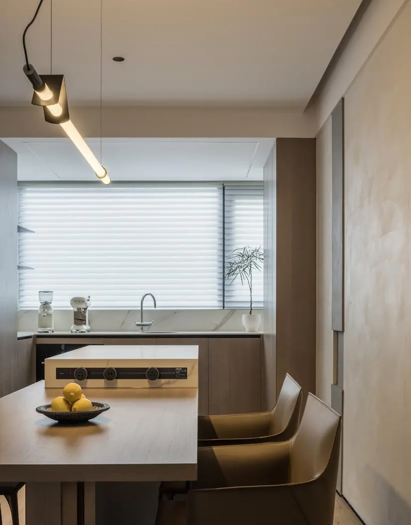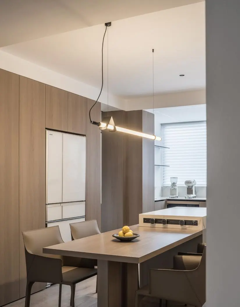 The design of the dining table and the island platform is unique, forming a smooth moving line in the back-shape. A slide rail socket is set on the side of the island platform, which enriches the usage scenario of the dining table. Whether you are cooking or enjoying food, you can share warm time.