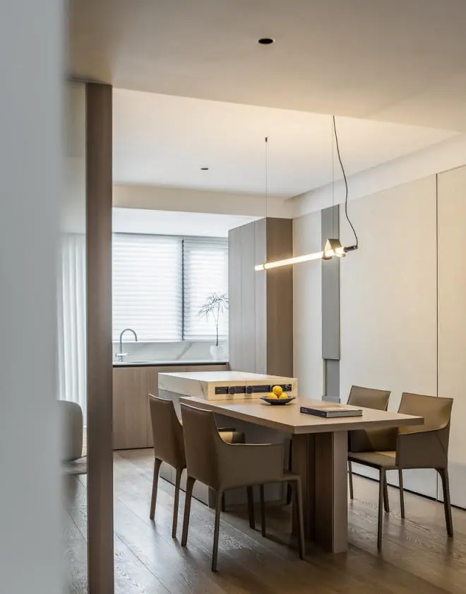 The living room is based on simple and elegant tones, and neat lines outline the outline of the space, creating a quiet and elegant atmosphere, so that residents can feel tranquil and relaxed here and enjoy every moment of life.