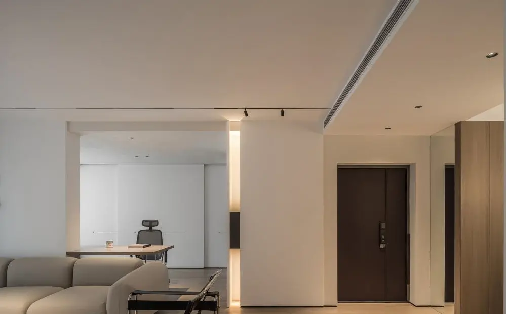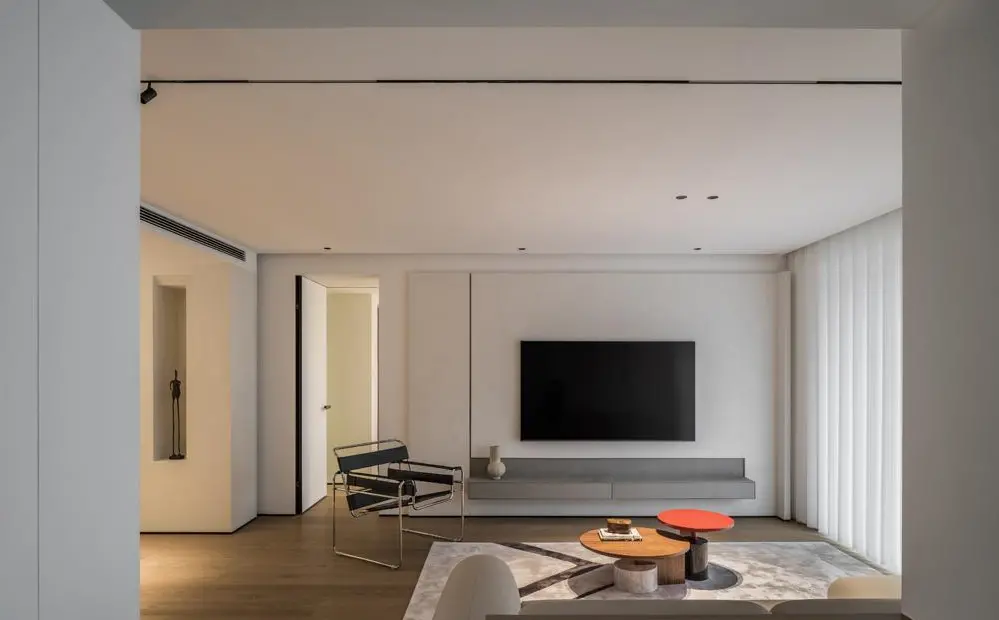 It adopts the design without main lamp, and the wall and ceiling are properly blank, leaving more room for imagination for the home. The TV background wall skillfully uses lines and black and white colors to create a layered, refreshing and comfortable living scene.