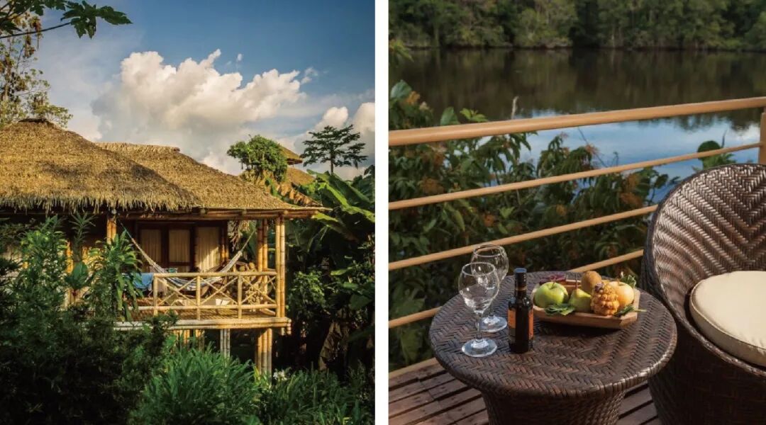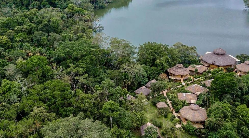 The camp is located on the south bank of the Napo River, facing Lake Garza Cocha. At sunset, order a cocktail on the terrace, surrounded by a purple sky, and the chirping of animals can be faintly heard in the deep green jungle.