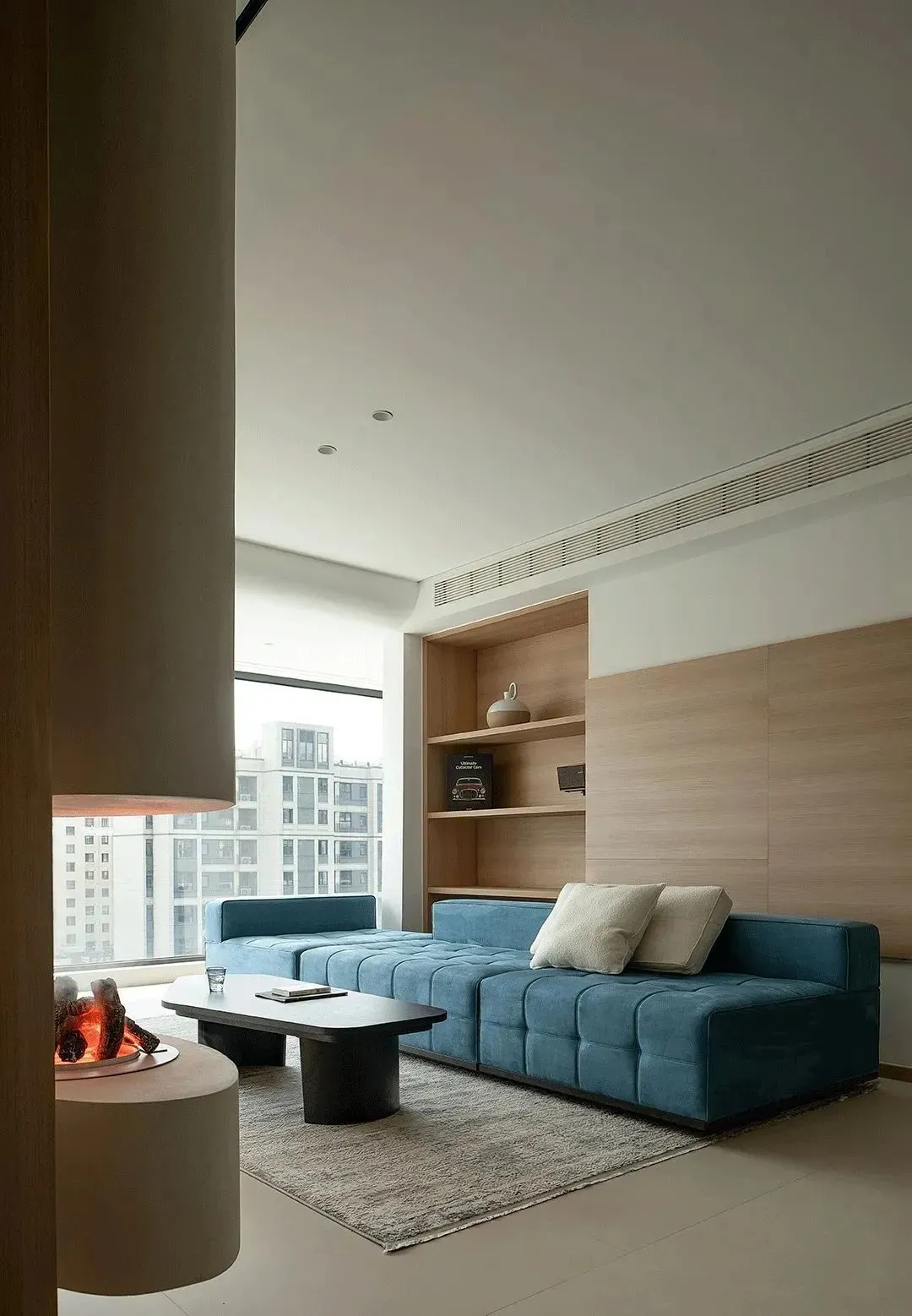 The bell blue fabric sofa has become the visual focus of the space, and its simple lines not only create a rich sense of layering, but also add a touch of freshness and elegance.
