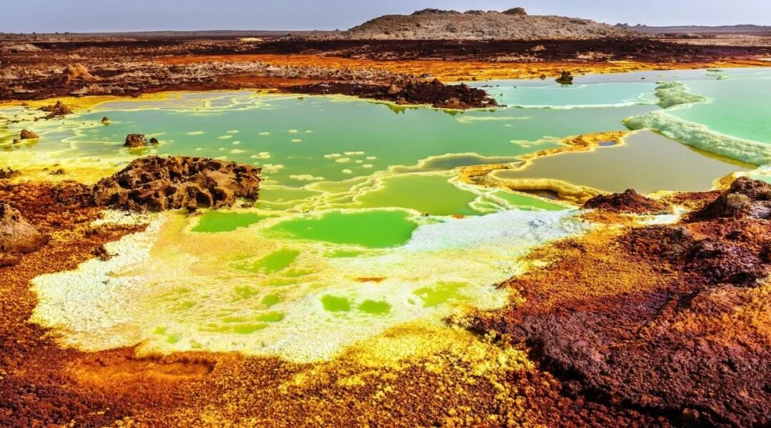 Crossing the Dallol Depression, at an altitude of 116 meters, it is one of the lowest and hottest places in the world, and is known as the hottest place on earth. The boundless land is covered with a thick layer of saline and alkali, hundreds of steam nozzles and highly acidic lakes of different colors. Eventually a 5-hour ride back to Semilla.
