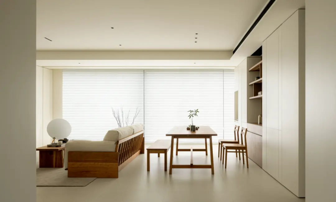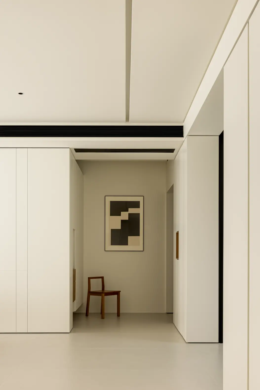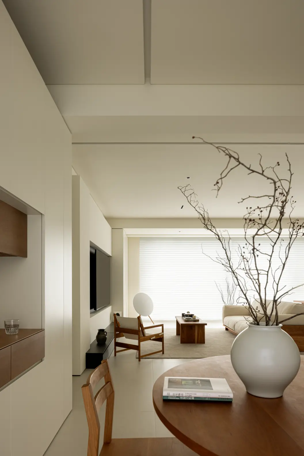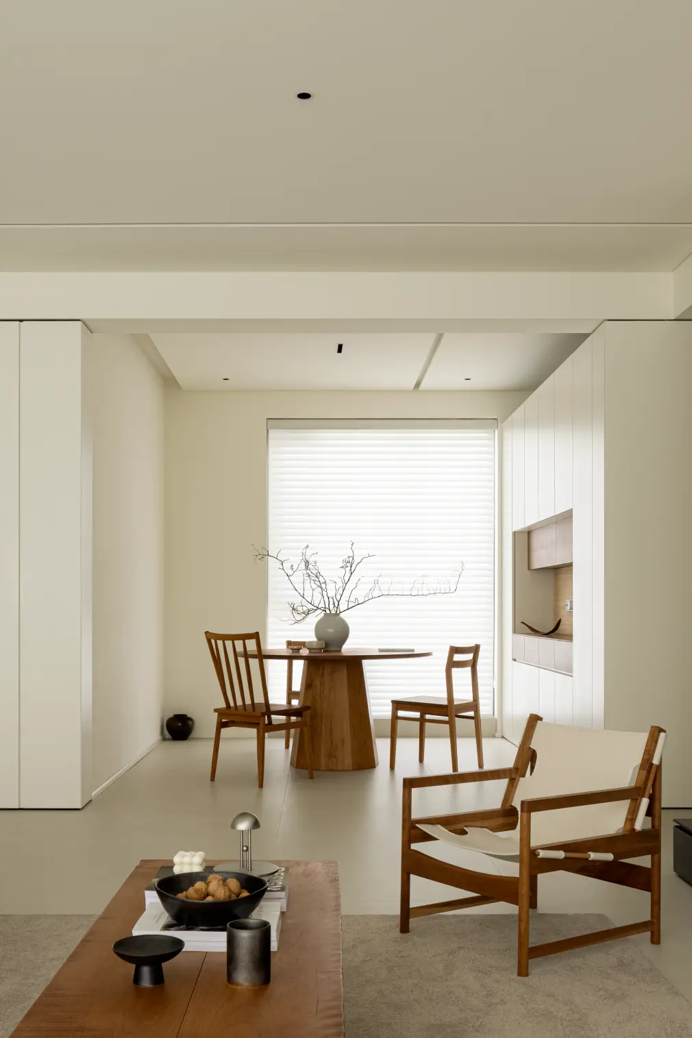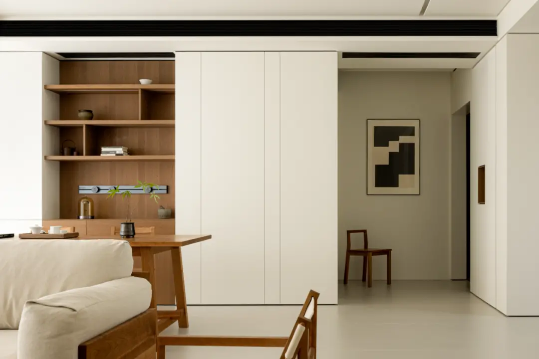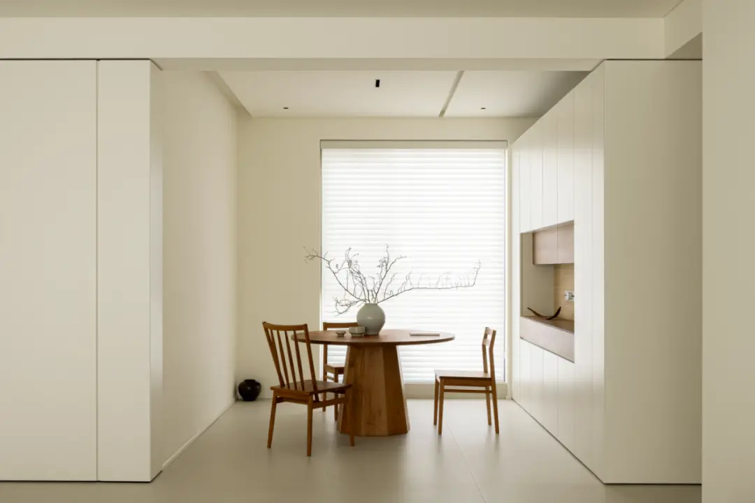 The weather turns cold, but home makes people feel particularly warm and at ease.More and more people choose to start from “comfort”, build a residence that best suits their lifestyle, and enjoy a more relaxed time. This case explores a set of160 ㎡ white minimalist four-bedroom apartmentThrough ingenious space planning and the use of log materials, it presents a modern and warm living environment. Each space has been carefully designed, embodying the core of minimalist style: removing complexity and pursuing the integration of function and aesthetic feeling.