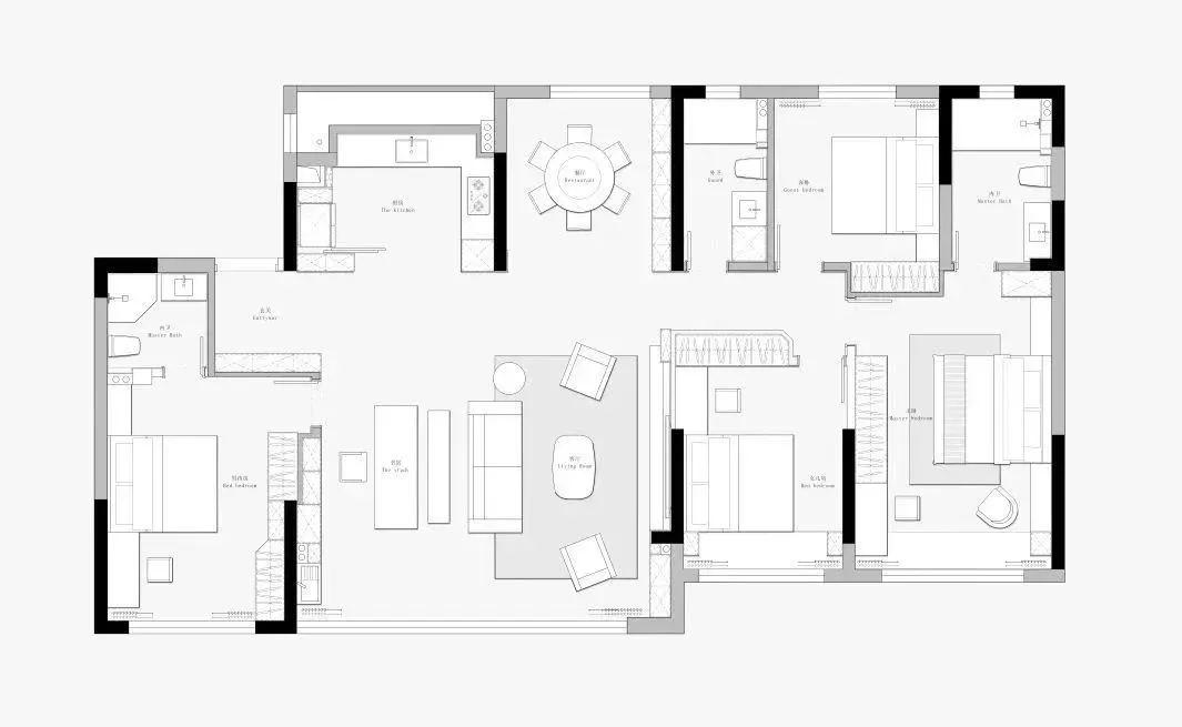 160 ㎡ four-bedroom apartment, double entrance cabinets + double dining room, so good at designing