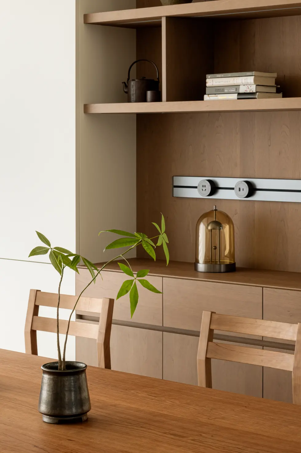 A sideboard is customized on one side of the restaurant to make daily dining and storage more convenient and comfortable.