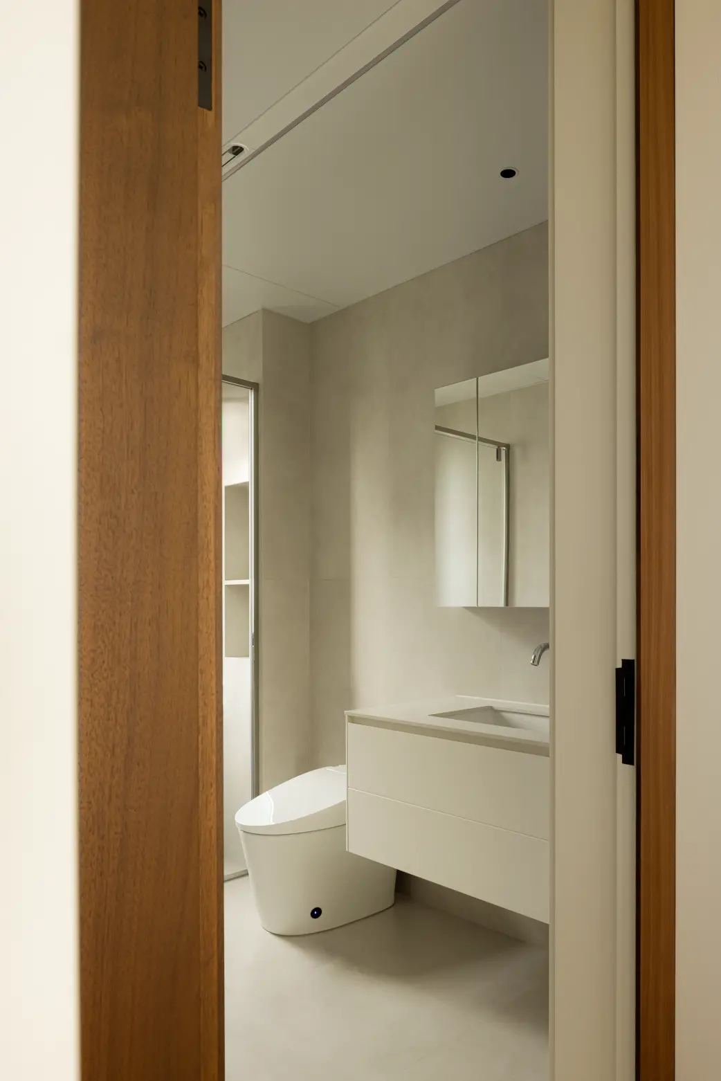 The bathroom is separated from wet and dry, and white sanitary ware and storage cabinets are selected, which is simple and practical. Clean lines and bright space design make this a private corner to relax.