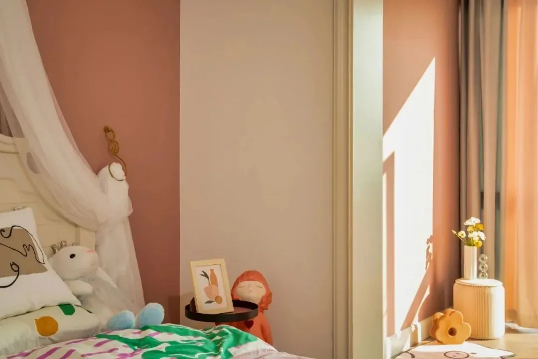 The second bedroom is my daughter’s room. The gauze curtain of the princess castle set off with the bright rose red color, which is full of innocence and interest.