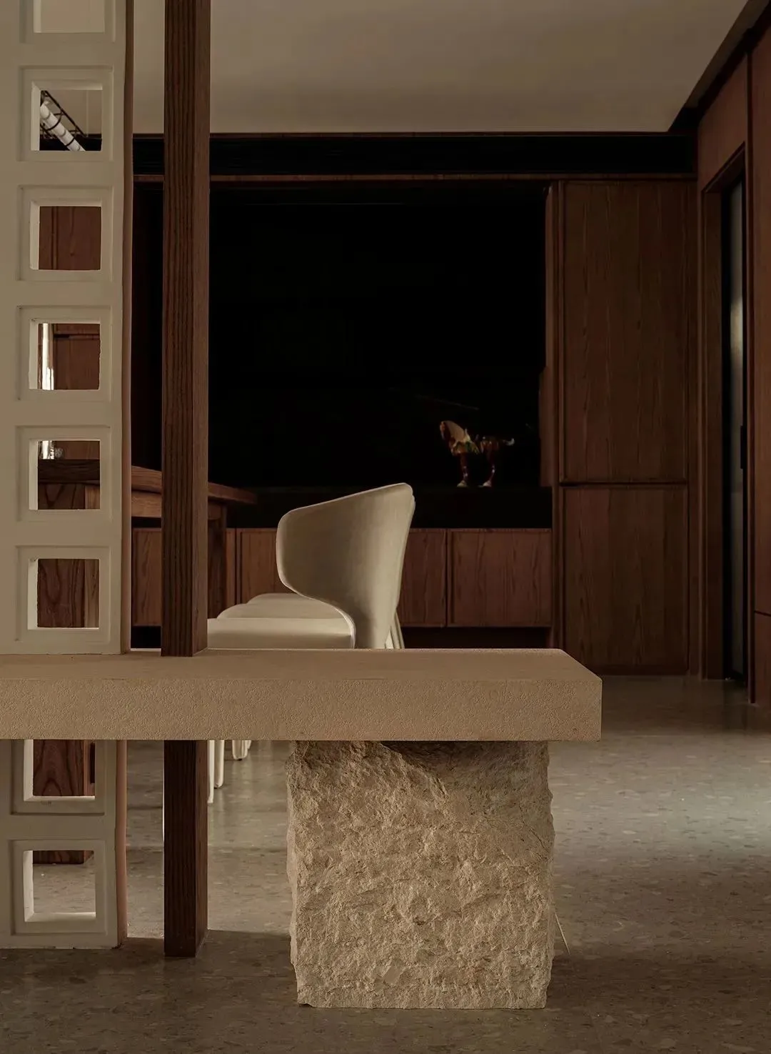 This is a family of three full of texture and temperature, with an area of 189 square meters.