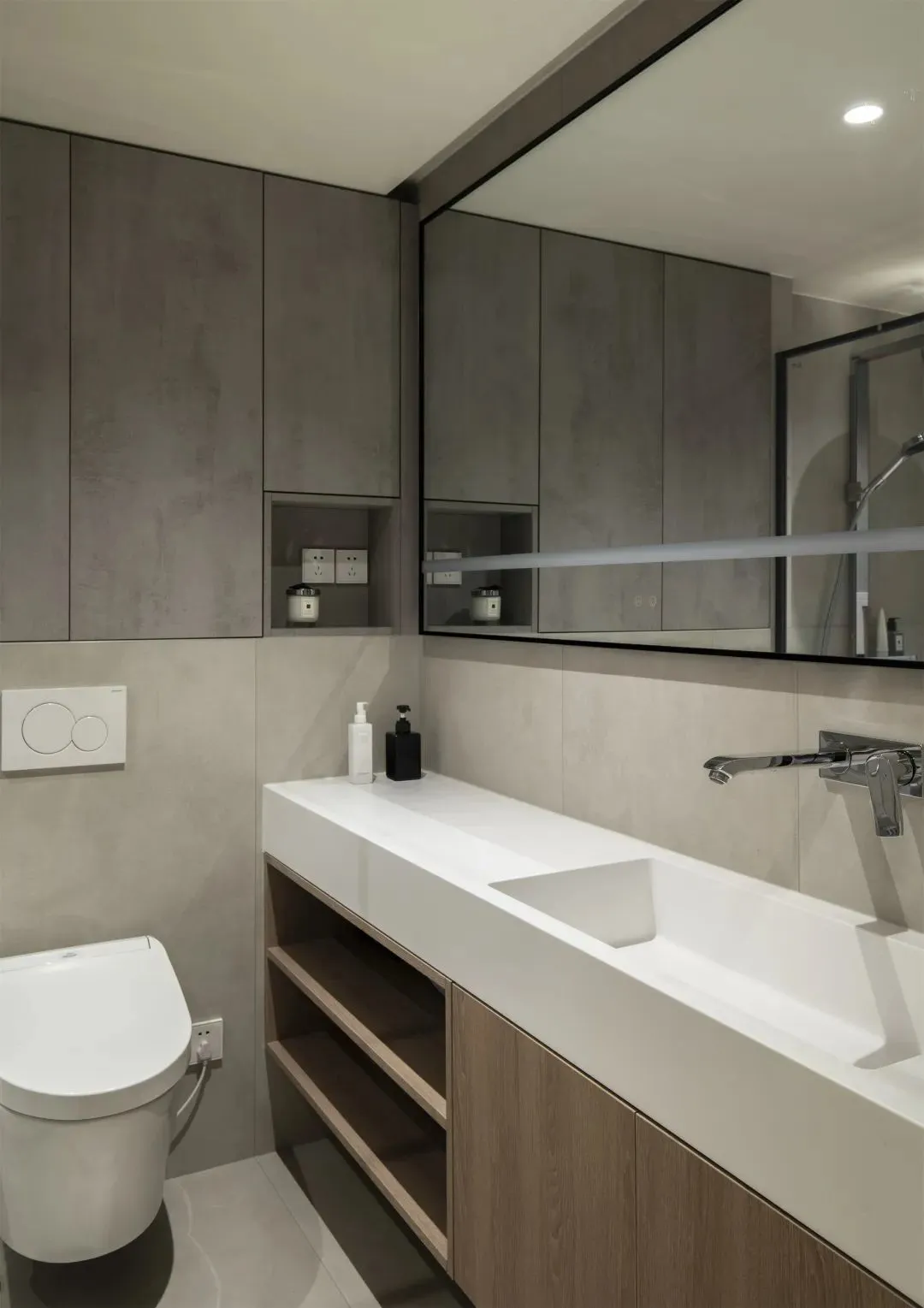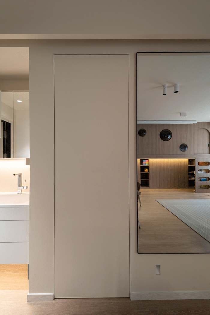 Bathroom entrance adoptsInvisible doorDesign, so that the walls of public areas remain unified and have a stronger sense of integrity.