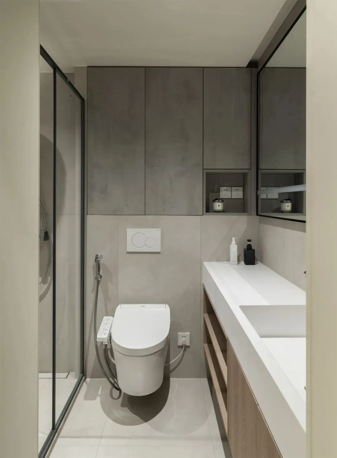 Use glass partition in bathroom to realizeWet and dry separation, and realized the efficient use of small space through several details: