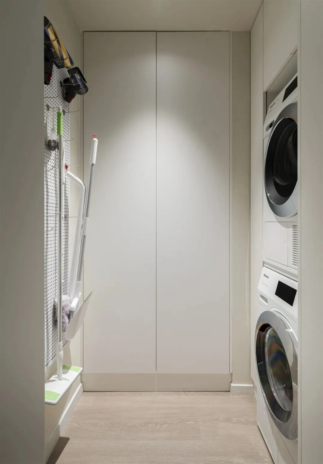 Lockers are made all around, convenient for storing laundry detergent and other supplies. Wall utilizationHole plateStore cleaning tools on the wall, make efficient use of vertical space, and don’t waste every inch of space.
