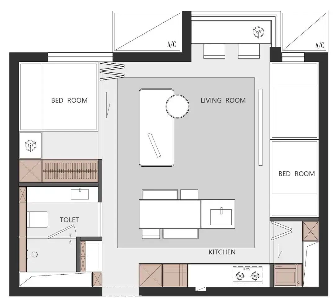 Lighting and ventilation are the key factors affecting residential happiness. In order to solve the defects of poor lighting in apartment, designers boldly adoptedOpen layout, reduce partition blocking and make the space appear brighter and more transparent.