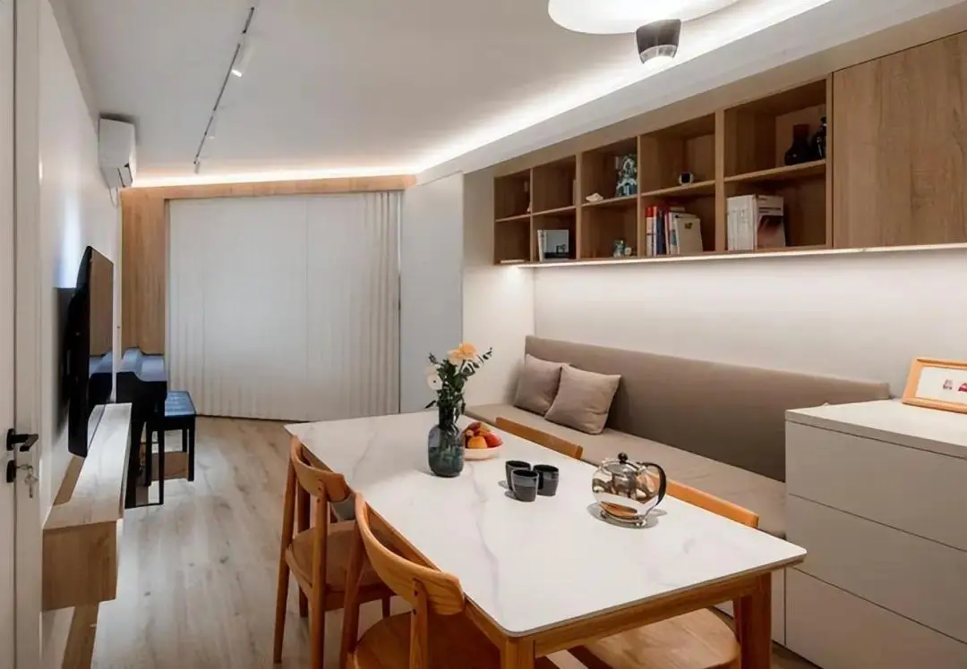 In order to meet the needs of children to practice piano at home, the TV wall specially sets aside a piano area, with a clear space division and a stronger overall sense of hierarchy. In this open space, three generations of a family can communicate, interact, have meals, practice piano and share warm time.