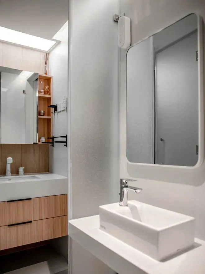 The bathroom adopts glass sliding door to realize wet and dry separation, which is convenient for five people to use. Double washing areas are set up, and the toilet area and shower area are also independent, which is convenient for families to wash during morning and evening peak hours without interfering with each other.