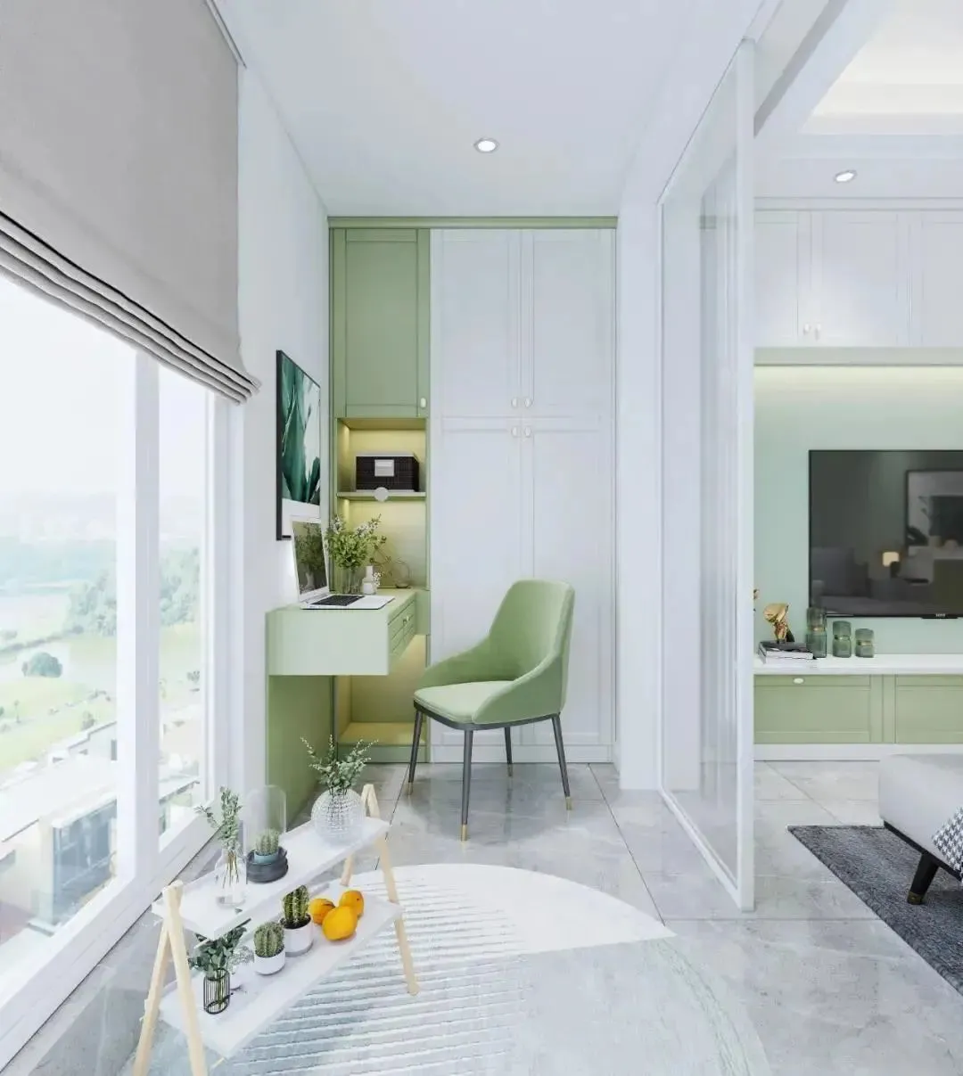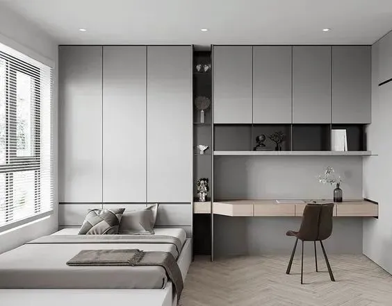 This three-in-one design is very common in children’s rooms or multi-purpose rooms. It can meet the needs of study, rest and storage at the same time, which is both practical and beautiful.