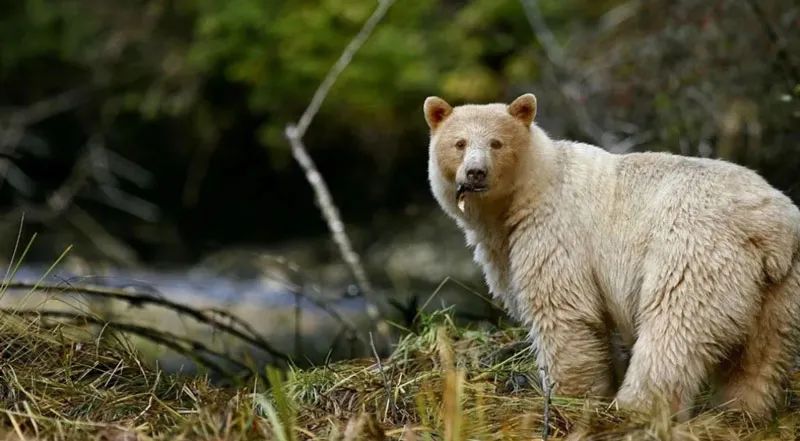 Every year from mid-August to early September, salmon starts to migrate, and white spirit bears will stay by the stream to catch fish, trying to eat fat for the winter. Scientists have found that white fur is not so easily found by underwater salmon on the water surface, so white spirit bears have an advantage in catching fish.