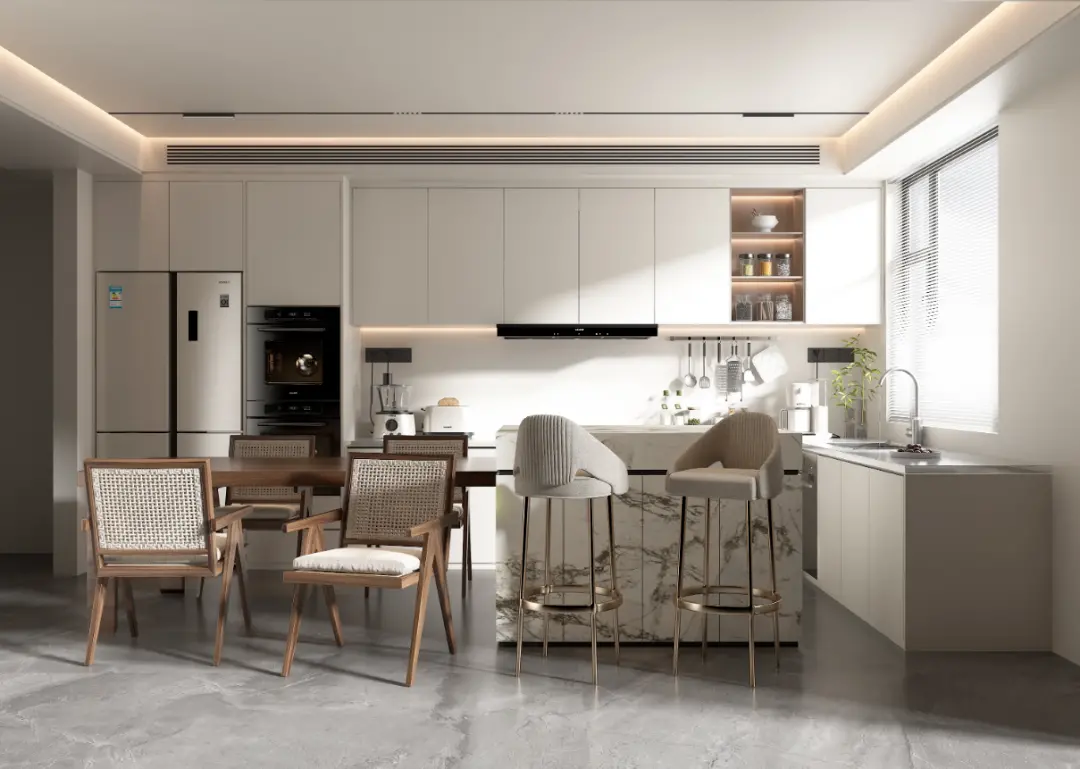 The optimal height of the bottom of the hanging cabinet from the ground is usually above 160 cm. The distance between the hanging cabinet and the cabinet countertop is generally 60-70 cm according to the industry standard, and 70 cm is more common.