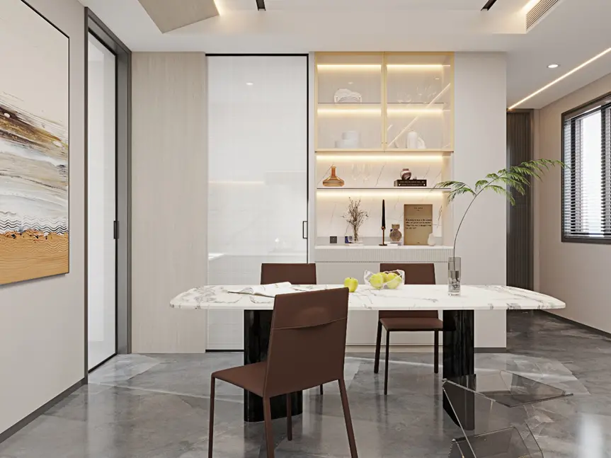 ● Sliding doors are relatively space-saving and have a strong sense of transparency, especially glass sliding doors can enhance the sense of space openness. However, the sliding rails of the sliding door will occupy the ground, which may affect walking and make cleaning a little troublesome.