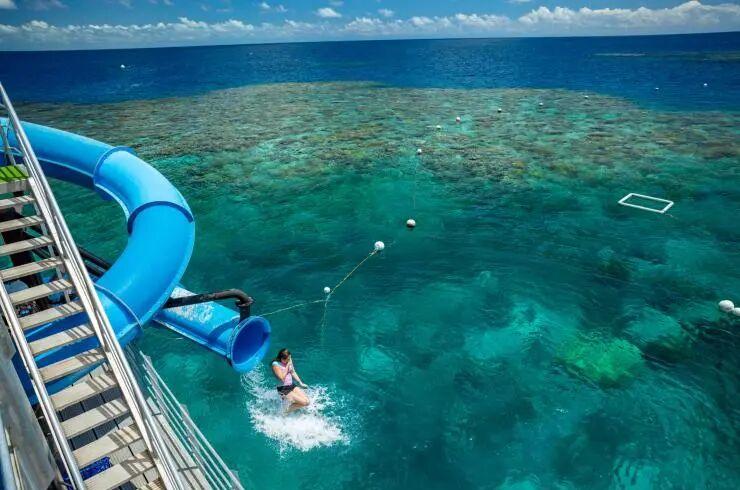 The Sun Lovers features a spiral water slide on the offshore platform at Moore Reef, perfect for an experience with family and friends. The package includes snorkeling, glass bottom boat and other activities, which is full of fun.