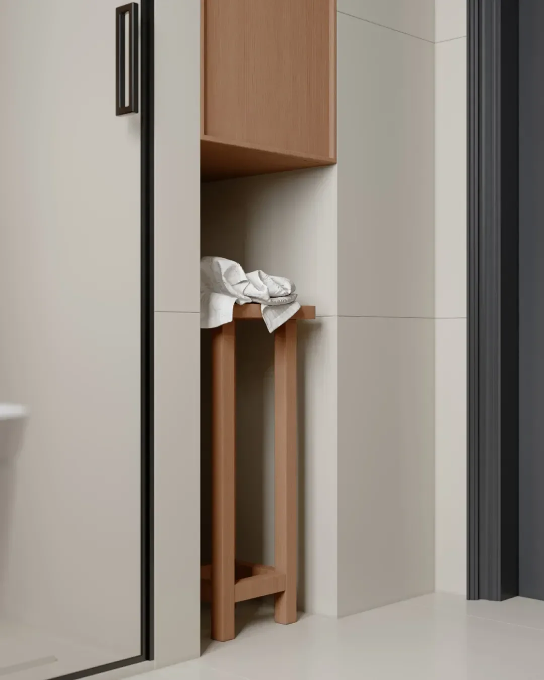A set of multi-functional storage cabinets is set on one side, which easily solves the storage problem of household sundries and keeps the porch clean and tidy.