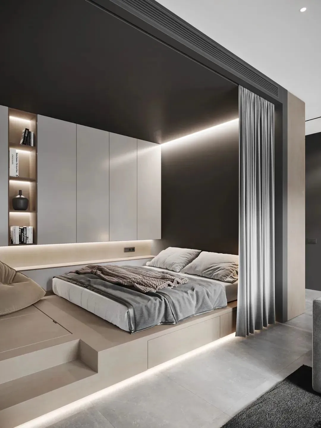 This style of tatami is easy to move, flexible and simple, but the storage space at the “bottom” is based on a single box, which may have certain restrictions on the size of the stored items.