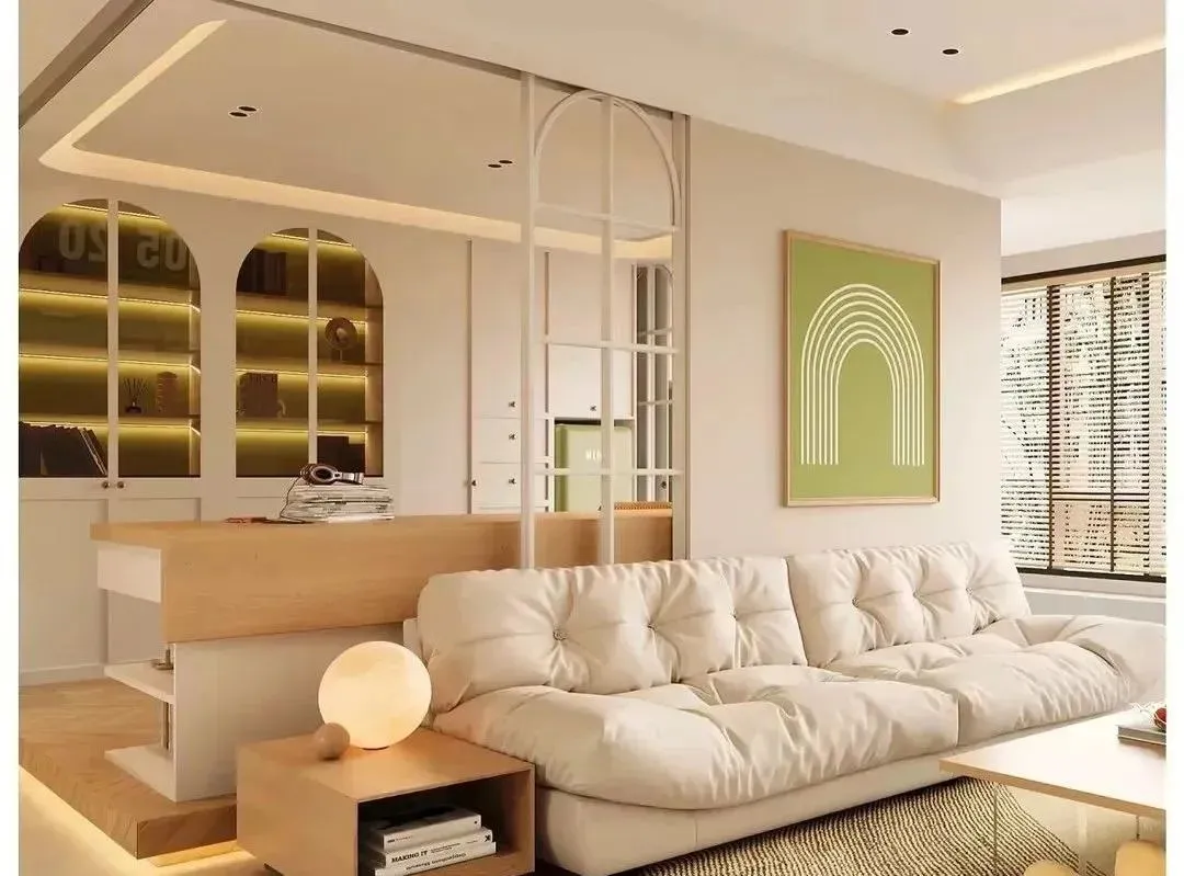 If there are not many guests at home at ordinary times, and they don’t often move in the living room, or the functional requirements of the living room are relatively single, then you can consider decorating it into a “studio” style, with study and work as the main functions. You can abandon the conventional configuration of the living room and just customize a set of multi-functional combined cabinets (including desks, storage cabinets, shelves and other functions) on one wall. In terms of decoration, it is very atmospheric to fill it with books.