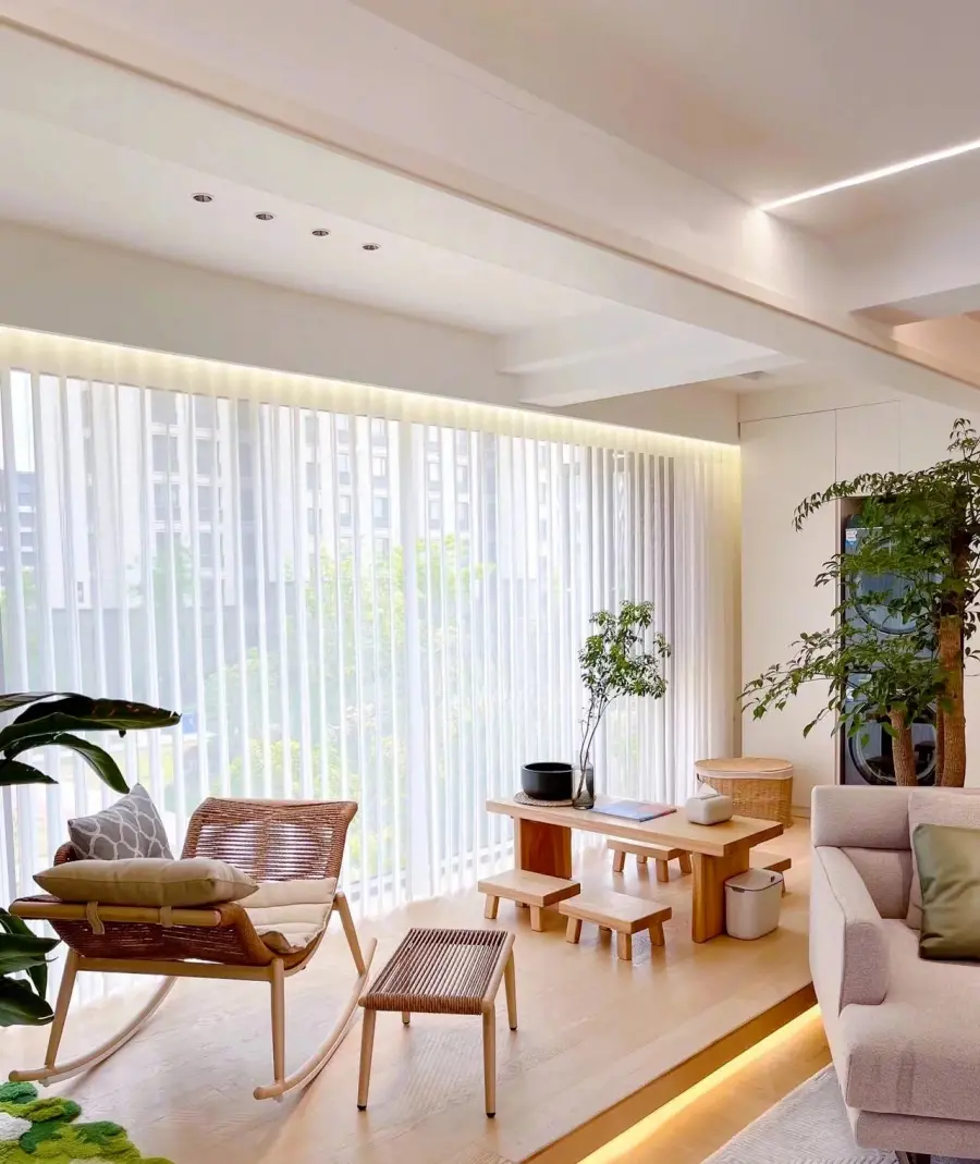 If the living room has a balcony, you can choose to raise the balcony floor to make a platform design, which can create a sense of hierarchy in the space. If it is matched with some lighting design, the effect will be better. Children can run, jump and play on it, and adults can also sit on the floor, or add a lazy sofa, so as to be comfortable. If you like a regular sofa, it is also suitable for placing it on the floor.