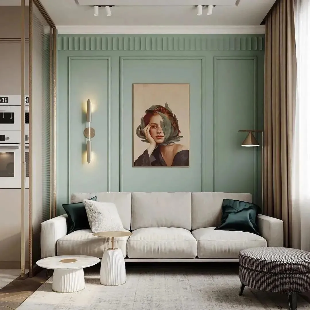 If you feel that simple latex paint is not refined enough and want a stronger sense of design, you can match it with decorative paintings.