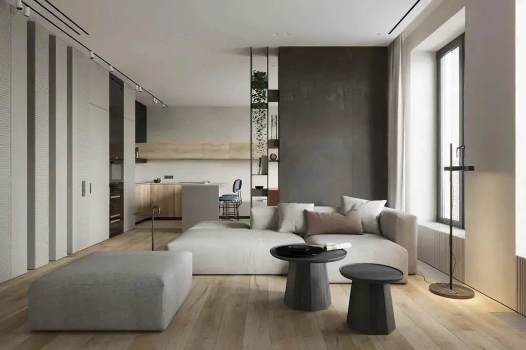 ▶ The half-wall sofa background wall will not completely separate the space and affect the lighting, but can also be combined with practical functions such as desk or bar.