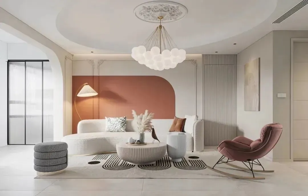 Outline one or two circles of plaster lines on the background wall, the overall space will appear simple and comfortable, and the border lines can effectively enhance the texture of the space.