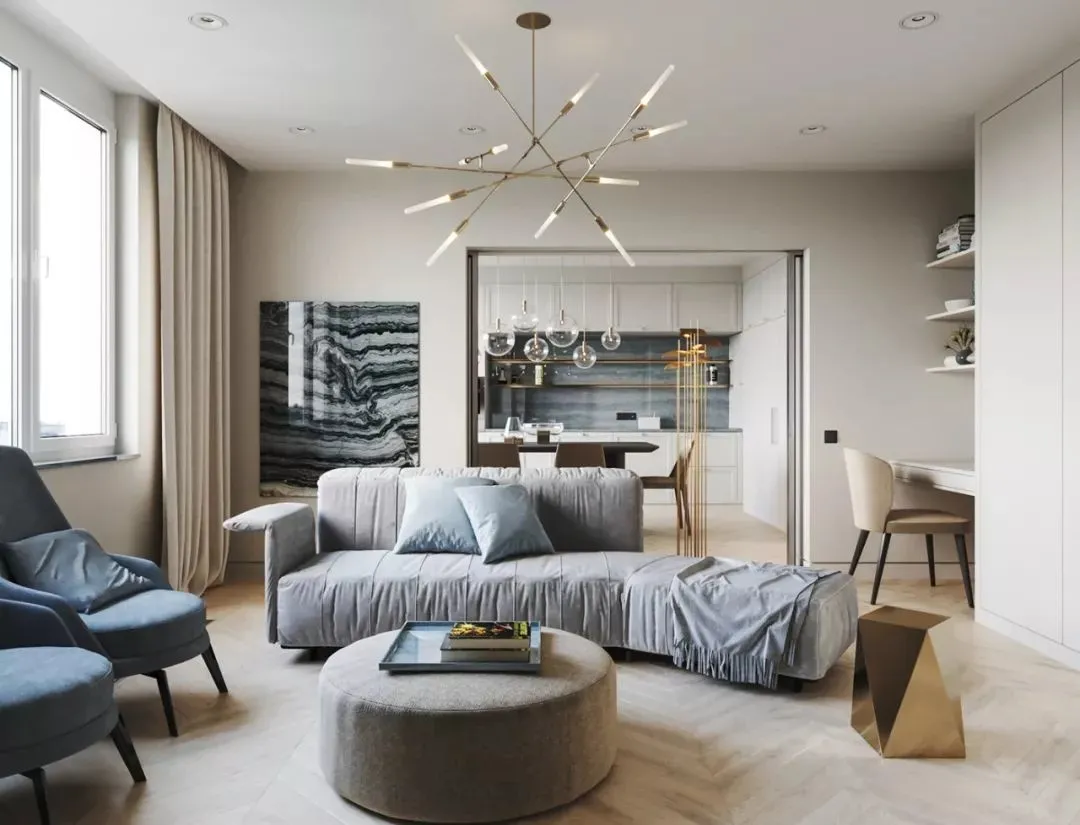 Urban residential units are usually compact, and try not to use partitions when possible, which can improve the lighting and functionality of the space.