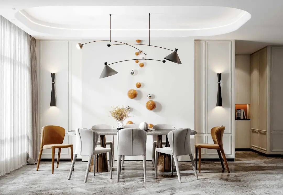 The dining room should also adopt a unified design language, embellished with coordinated tones, and it is best to see the same colors and elements in other spaces.