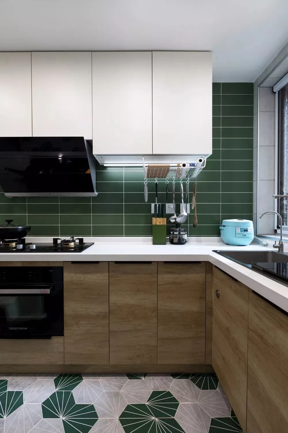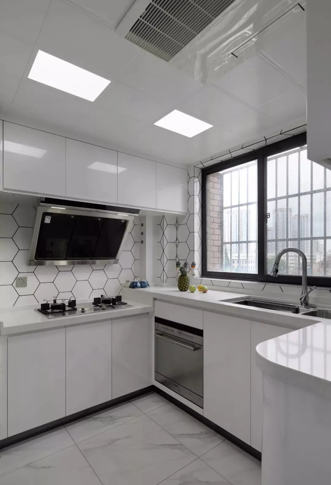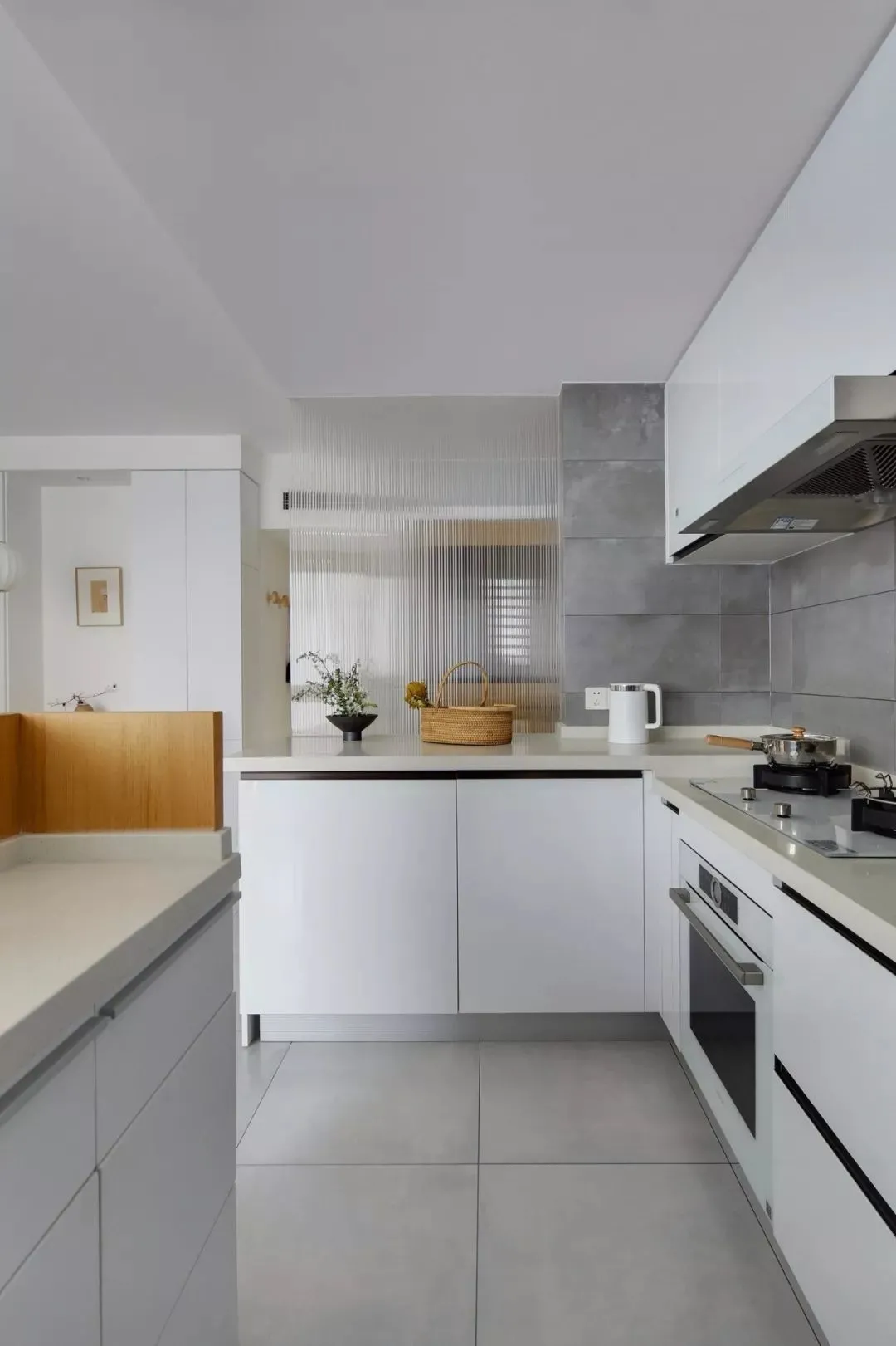 There are many things in the kitchen and miscellaneous, so the design should be as simple as possible. Too complicated decoration will look messy. The upper cabinet can choose a push-type rebound door, and the lower cabinet is equipped with an invisible handle, which looks neat and refreshing, and is also convenient for daily wiping and cleaning.
