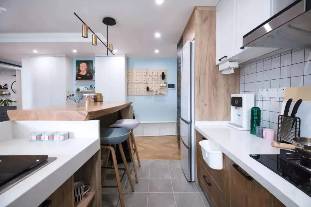 If the kitchen space itself is narrow, it is recommended to consider designing it as an open plan. This can effectively improve the transparency and visual area of the space. The extra area can even be added with a small island platform, which can not only increase storage space, but also expand the worktop.