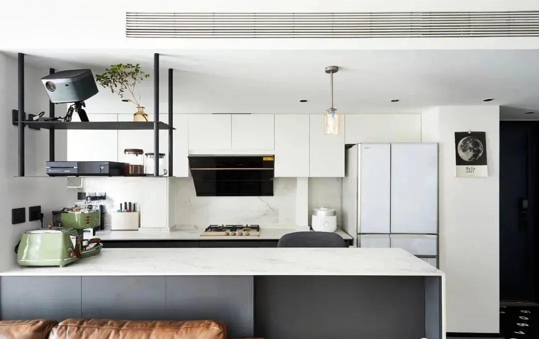 In order to make daily cooking and washing dishes more convenient and labor-saving, it is best not to have the operating height of the stove and sink on the same plane. This staggered design not only looks layered, but more importantly, it can relieve the fatigue of cooking with your arms and bending over to wash dishes for a long time.